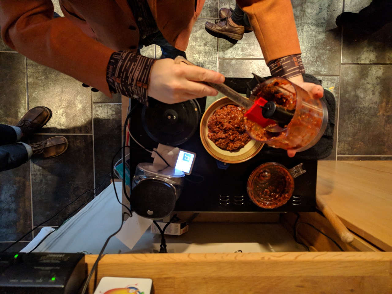 Sunday Family Dinner, started Nov 2018, is a periodic, sober, group cooking event. It's a chance to get together, with friends and strangers, and share the work of cooking together, and the pleasure of eating together. The event was on hiatus from 2020 to 2025 and is back in Nov 2025!